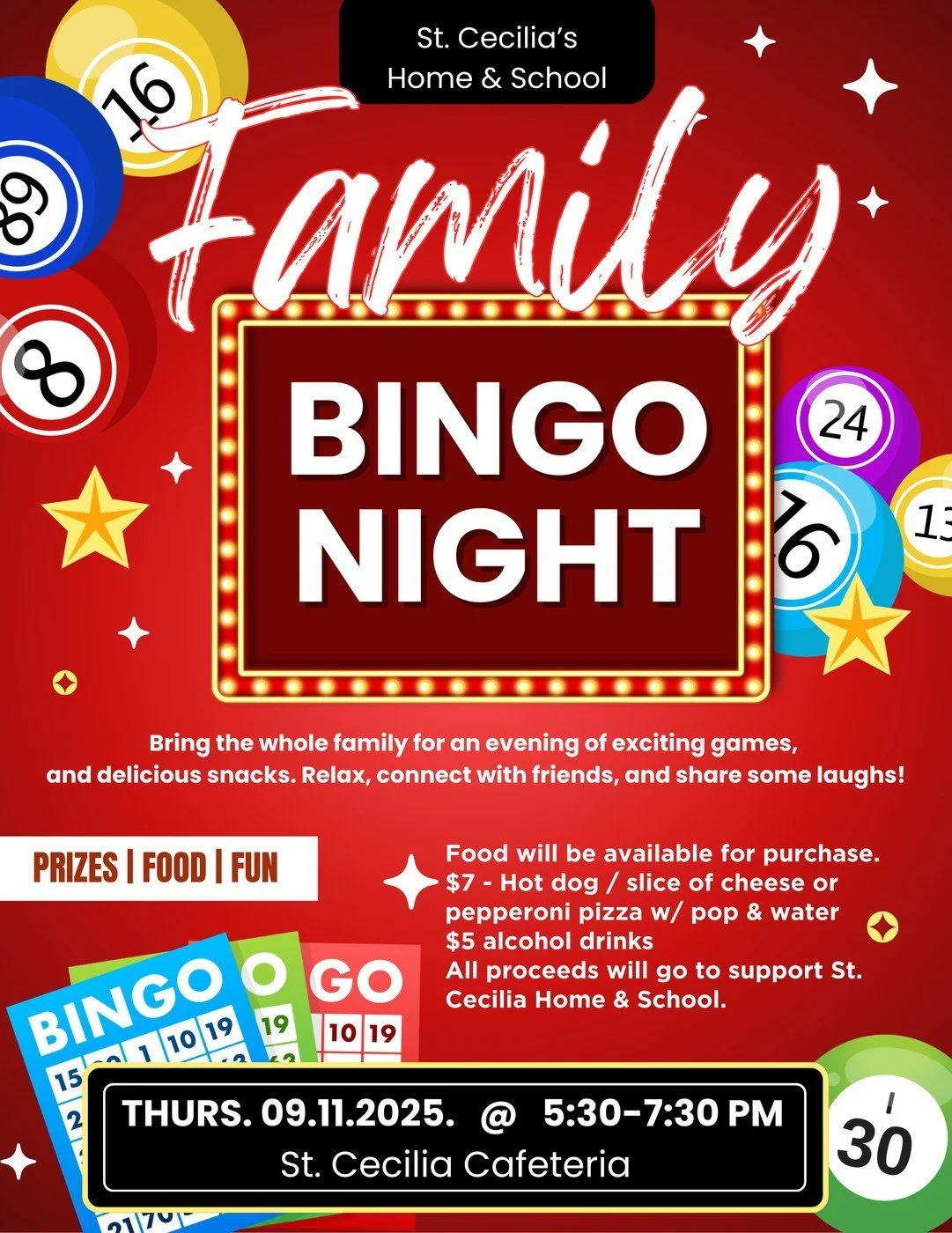 Family Bingo Night! Sept. 11 @ 5:30pm