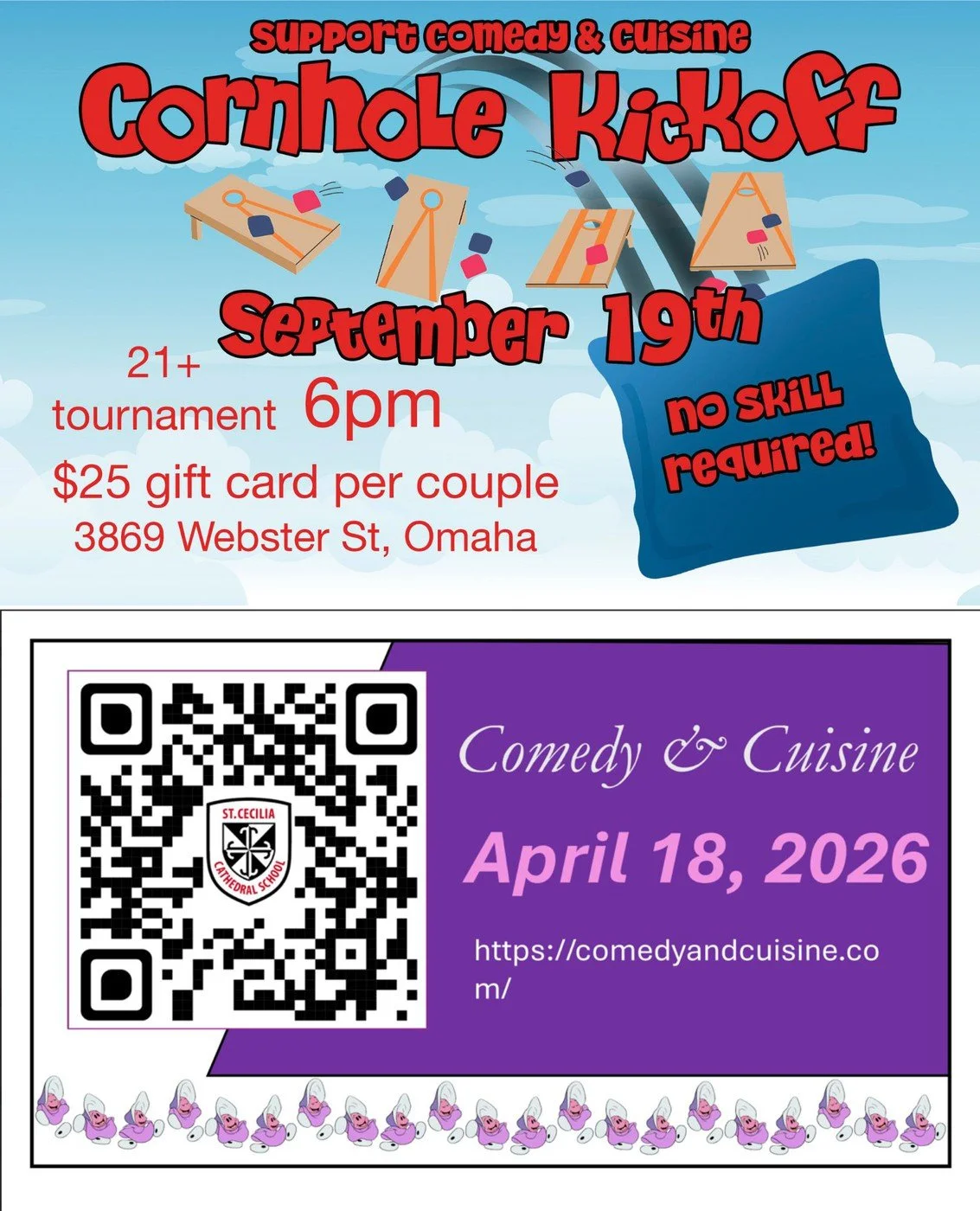 Comedy & Cuisine Cornhole Kickoff Sept. 19th @ 6pm